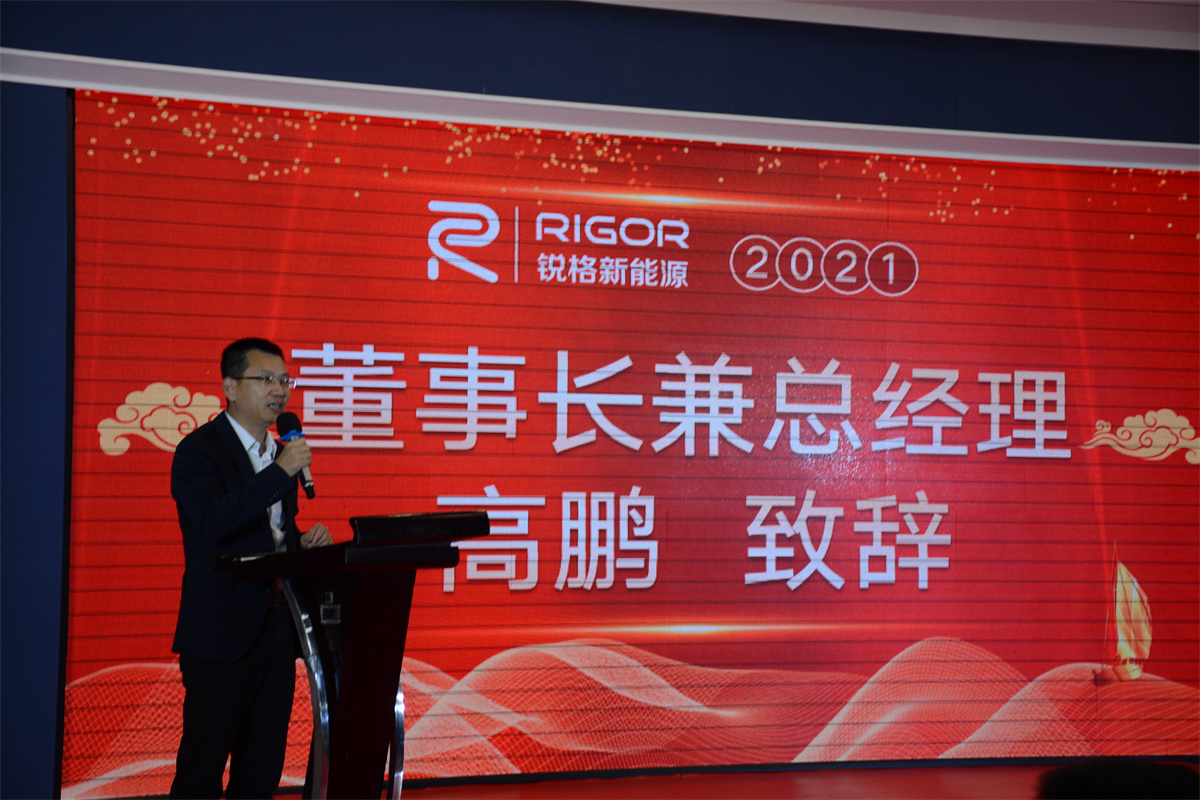 年會伊始,一段快閃拉開了盛典的序幕。銳格新能源董事長兼總經理高鵬先生發表開場致辭,他表示:“2021,這一年,不平凡,很偉大。銳格人用汗水、淚水及時間的研磨和忘我的堅守及出色的表現,鑄就了銳格的成就!”